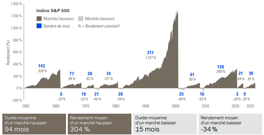 Les marchés haussiers et baissiers aux États-Unis depuis 1950